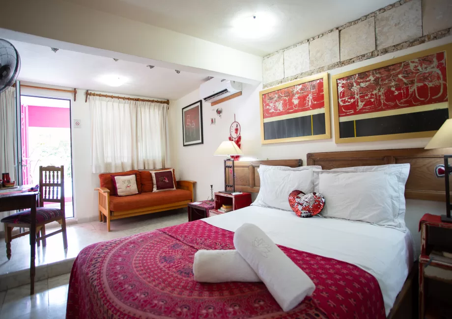 Para enamorados y amigos del CORAZÓN, es una habitación amplia y cómoda con una pequeña sala y una terraza hacia la calle. Ubicada en el segundo piso de CASA DE LOS XOLOS, es un rincón lleno de rojas sorpresas que te llevarán a abrir tu corazón. Aunque la cama está al fondo del cuarto, si […]