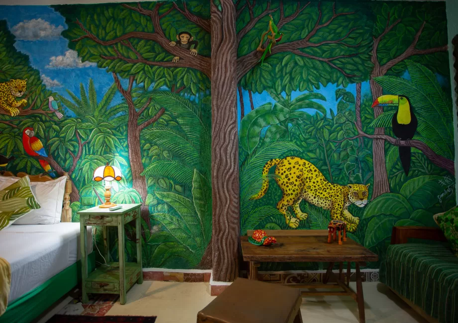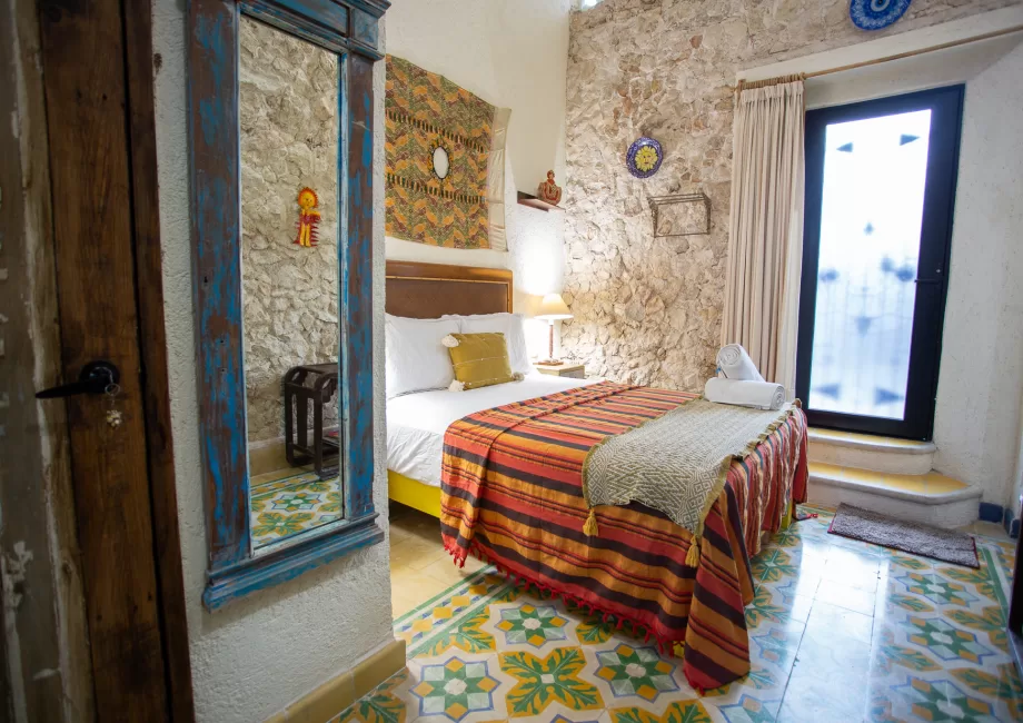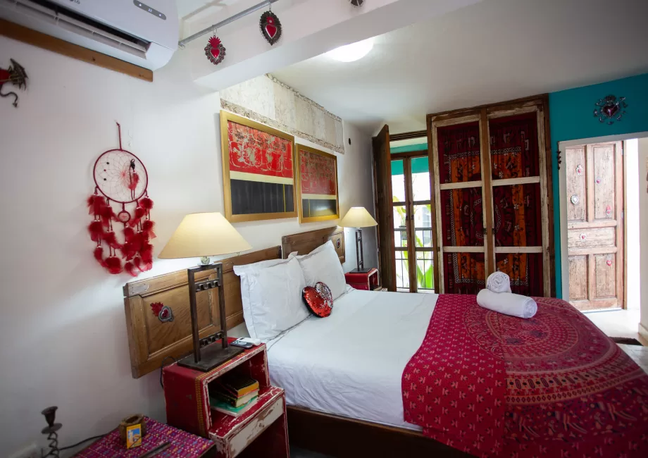 KAHLO le hace homenaje a la famosa pintora Frida Kahlo con colores y momentos representantes de su vida. El color predilecto de Frida fue el rosa mexicano y fue usado para darle fondo a las muchas artesanías encontradas aquí. Esta habitación cuenta con una cama Queen Size, ventilador de techo, aire acondicionado y baño privado.